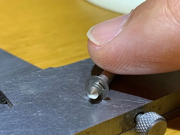 とりあえず今回は目の前にあったノギスの平たい面で作業します。