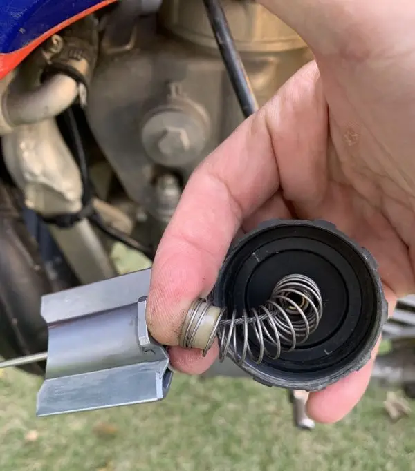 キャブのトップキャップを緩めます。KEIHINはねじ式なので簡単に取り外せます。