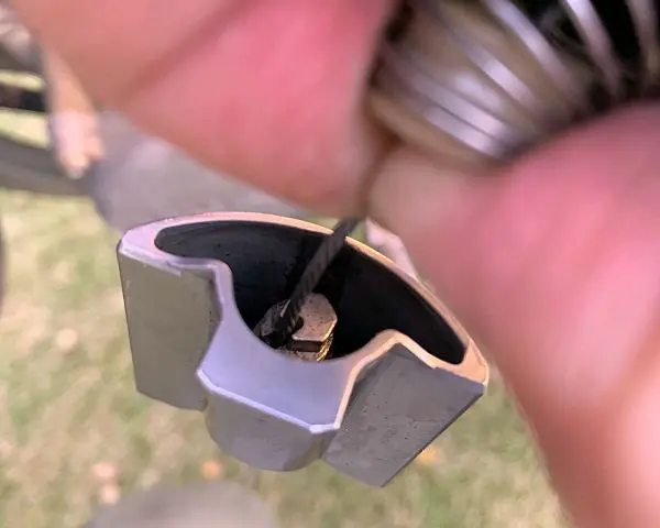 できるだけ全部縮めてそのうえでインナーワイヤーを掴みます。