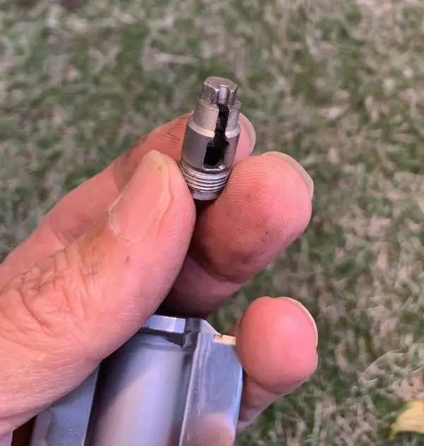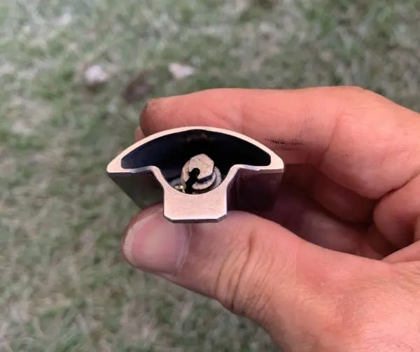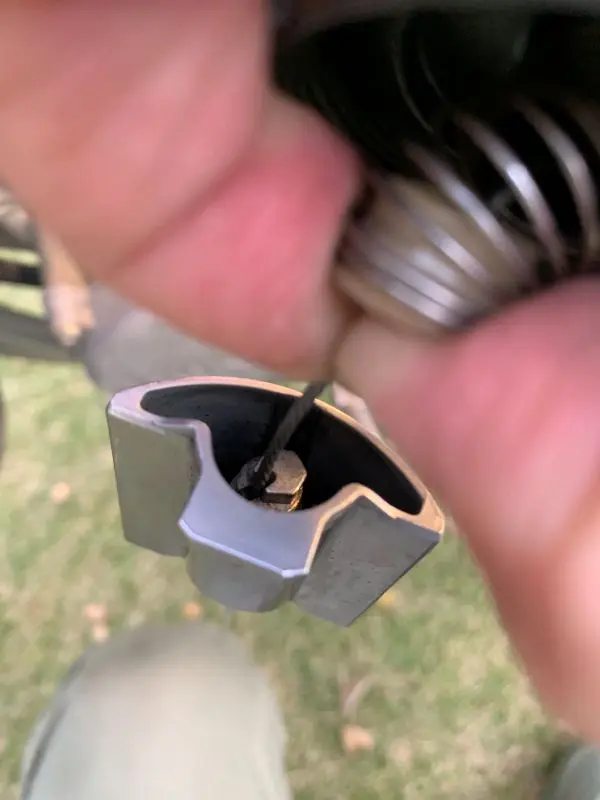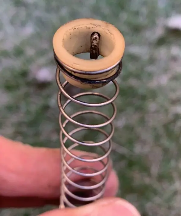 外れたら、スプリングの先端に付いていたスプリングシートを飛ばさないように外します。