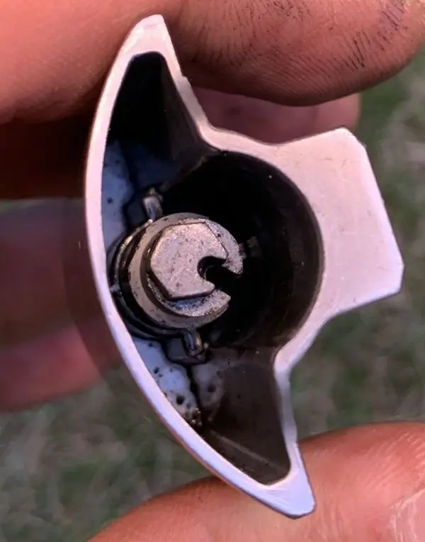 樹脂のスプリングシートが溝に正しくセットされていないと、ワイヤーのタイコが外れてスロットルバルブが