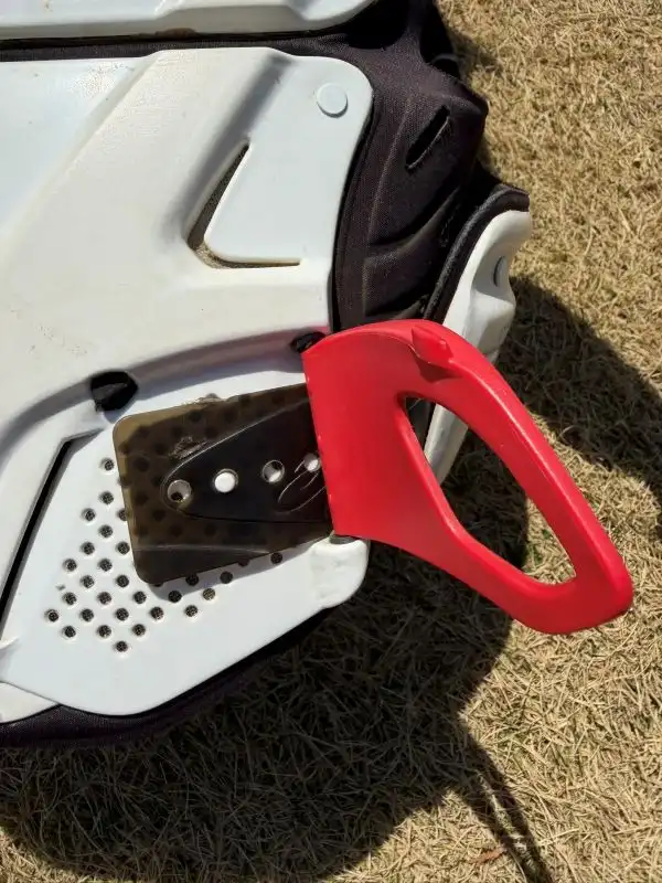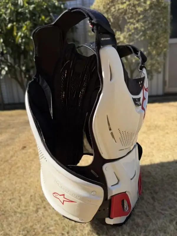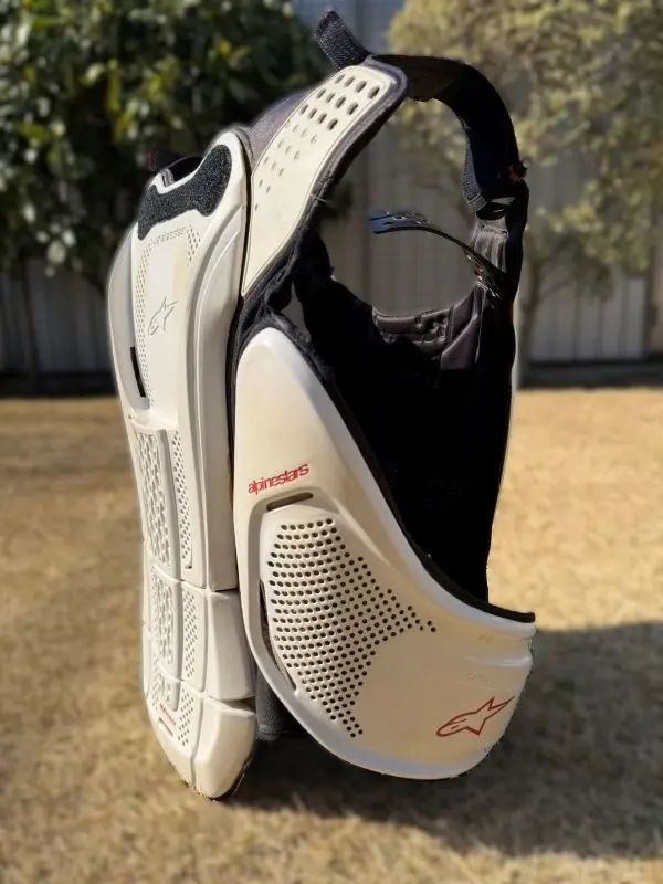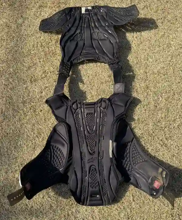 チェストガードは装着すると多少は暑いですが、ヘルメットやブーツの重たさや暑さに比べれば