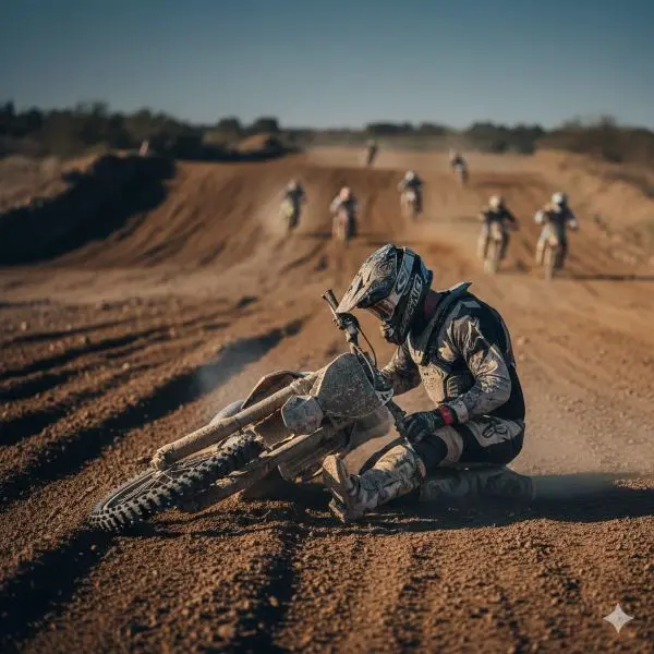 | 飛ばなくていいジャンプに挑戦して転倒 | 無理に合わせず、自分のペースを優先。特にレースでは割り切り、切り替えはとても大切! ジャンプの基礎訓練記事必見です🏁【完全初心者向け】モトクロス練習メニュー7選|安全に上達するステップガイド |