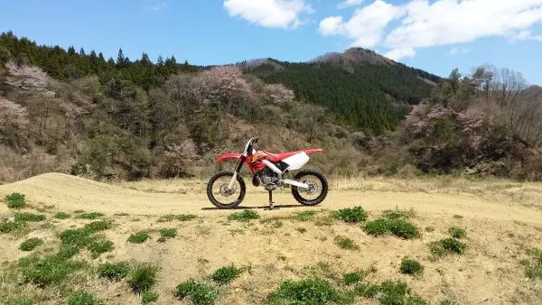 👇桜満開の時期の白河と2000CR250R 気分よく乗れてマシンも調子も良く感じます