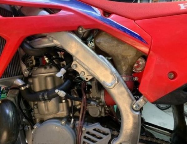 1995CR500Rのエンジンが2022CRF450Rのフレームにそのまま搭載できます。更にチャンバーも