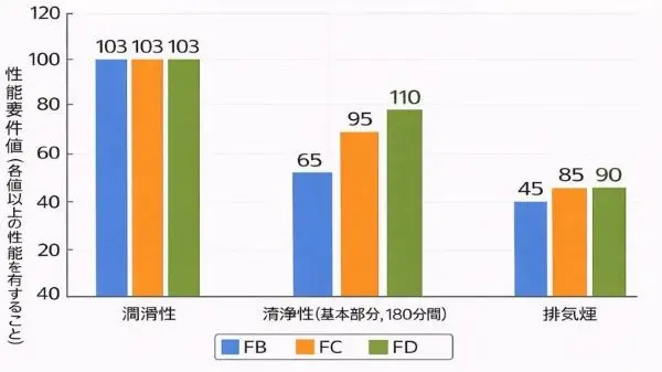 - 「煙を減らしたいならFDの可能性」FC/FDは日本のJASO試験モードでのTEST結果による規格分類分け。FBとFC/FDは要件の差が大きいが、FC⇔FDはけっこう微妙な差。FDは清浄性要件値が少し高い。私はFC/FDをあまり気にしたことは無かった…。