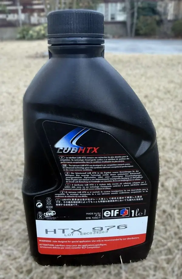 HTX909はELFの2stレース車両用の標準OILです。多くのOEMとの共同開発経験からのフィードバックが落とし込まれていると想像できるOIL。銘柄を問わず、ガチレーサーを動かすなら間違いないOILです。