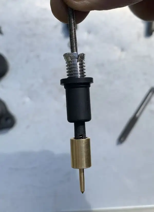 前回M8ねじを切ったこおの黒い樹脂部品とその下のチョーク機能部品は使います。